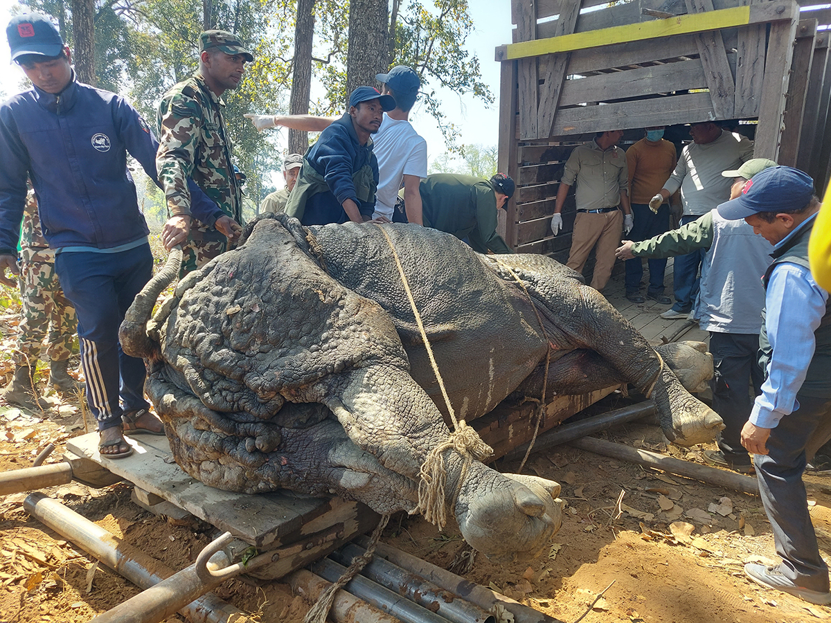 उक्त गैंडा मानव बस्तीमा समेत पस्ने गरेको उनले बताए। उमेर बढी भएकाले यो गैंडालाई निकुञ्जको मुख्यालय कसराबाट पूर्वतर्फ लगेर छाडिने तिवारीले जानकारी दिए। उनका अनुसार निकुञ्जका हात्ती, हात्ती सारे, प्राविधिक जनशक्ति, कर्मचारी, सुरक्षार्थ खटिएको नेपाली सेना र अन्य कर्मचारी गरी ६० जना जनशक्ति गैंडा स्थानान्तरणमा परिचालन भएका छन्।