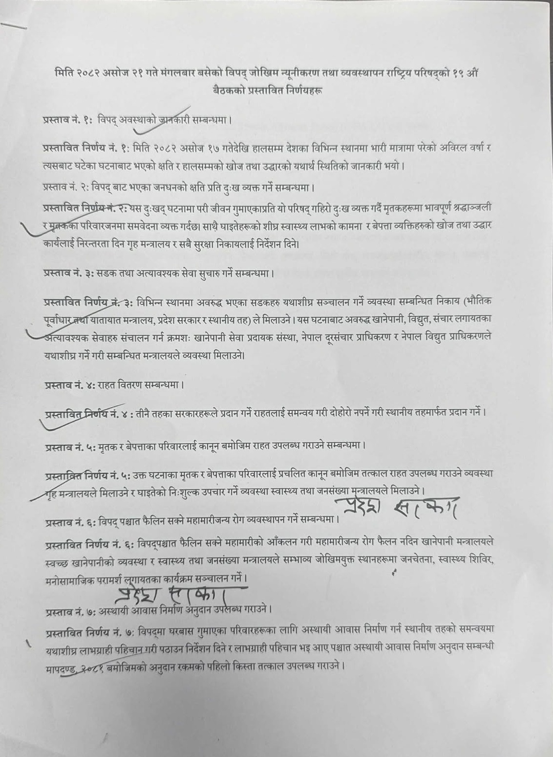 प्रधानमन्त्री एवं परिषद्का अध्यक्ष सुशीला कार्कीको अध्यक्षतामा बिहान सिंहदरबारस्थित प्रधानमन्त्रीको कार्यालयमा बसेको बैठकले बाढीपहिरोबाट घरबास गुमाएकालाई अस्थायी आवास निर्माणका लागि अनुदान दिनेसहित सात निर्णय गरेको हो।